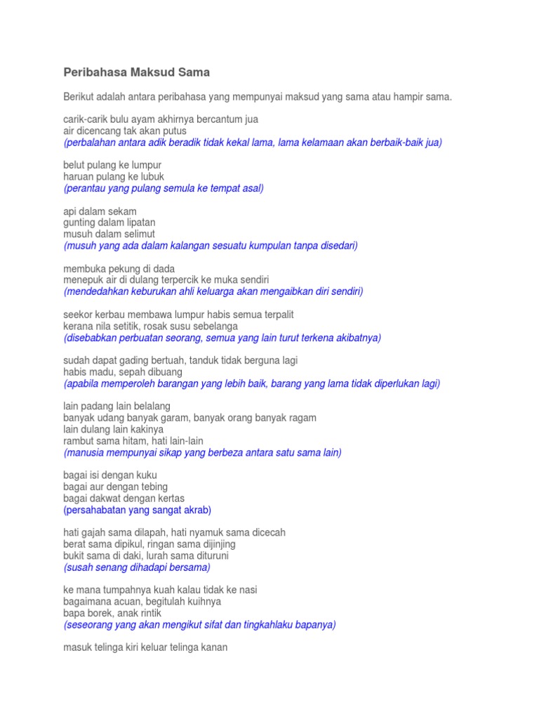 Berikut Adalah Antara Peribahasa Yang Mempunyai Maksud Yang Sama Atau Hampir Sama Pdf